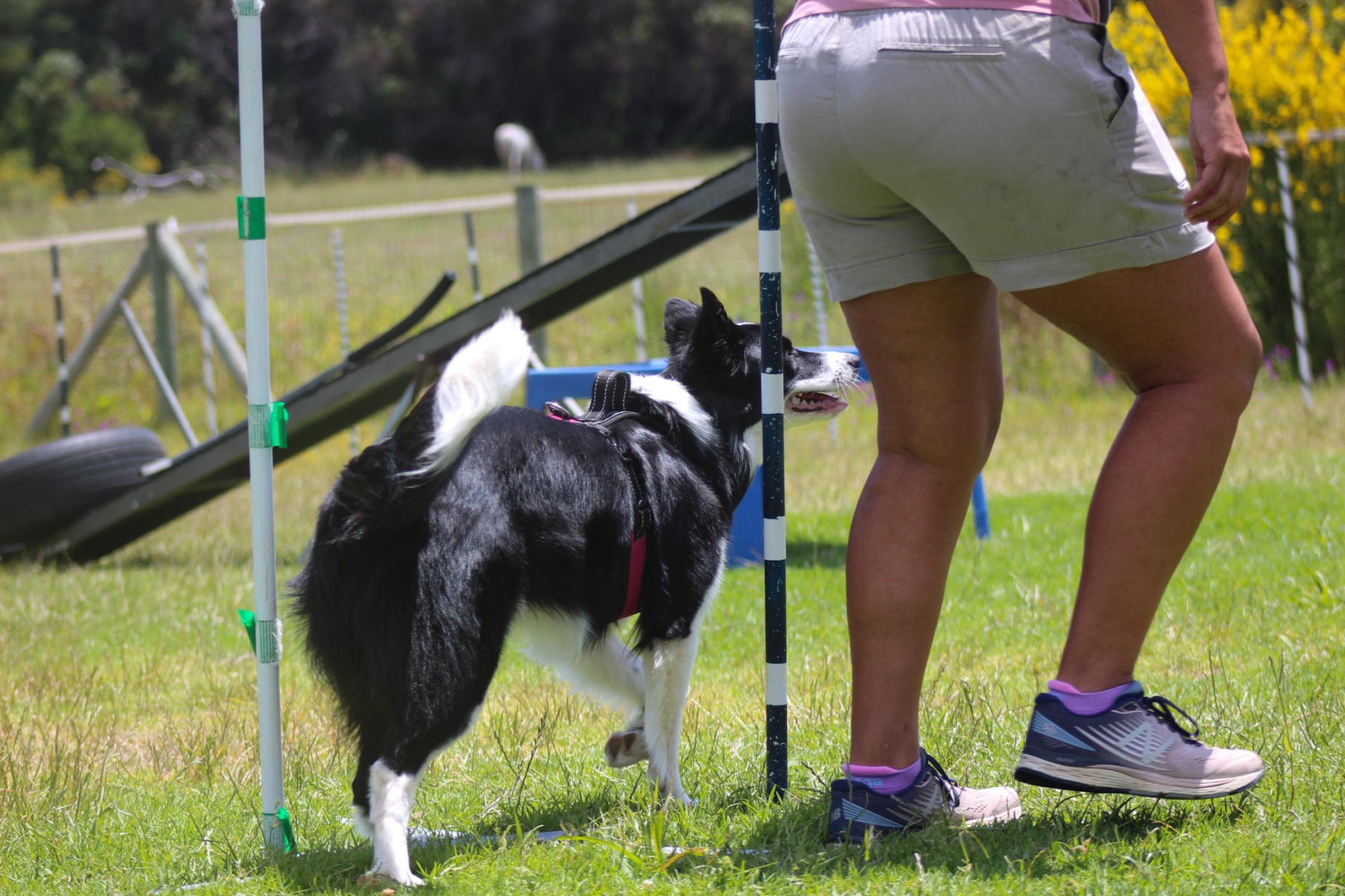 I am so grateful I found Dog Dynamics. When Chantal, my border collie, jumping champion, could no longer jump I found dog dancing. This is where she could strengthen her core and muscles. With hoopers, which Chantal loves, she can run to her hearts content through hoops and tunnels without jumping. My rescue border collie, Raffa, who is now 2 years old is a sensitive boy. In the beginning he didn’t want to jump, with some hoopers and fun obedience, Raffa is now competing in agility and jumping. Yvonne at Dog Dynamics is absolutely awesome.